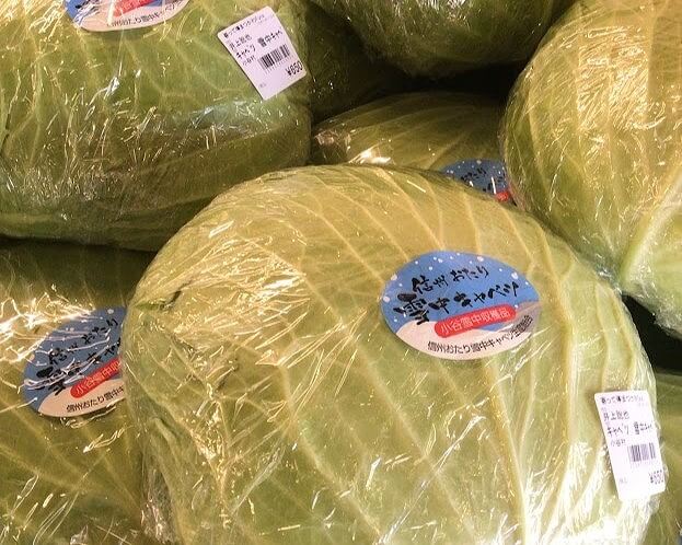 小谷村から雪中キャベツが入荷中。根がついたままのキャベツを雪の中で熟成させることで甘みが増してシャキシャキの食感に。ぜひ「生」で食べて甘みを味わってみてください。雪の中から大切に掘り出された特別なキャベツです。